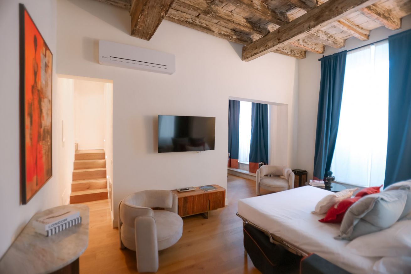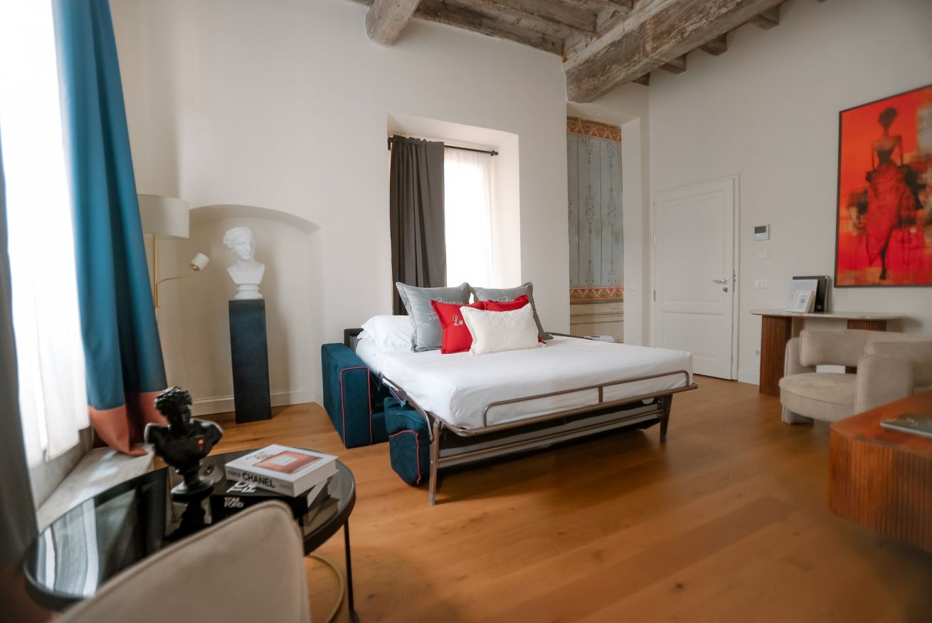A soli 1 minuto a piedi dal Duomo, questo appartamento permette di vivere Firenze nella sua posizione più centrale. Situato al 2° piano di un palazzo storico, lo spazio combina il fascino dell’architettura fiorentina con interni moderni. Gestito da Florence Luxury Management, pensato per offrire un soggiorno confortevole e senza imprevisti. I letti King Size, garantiscono un riposo di alto livello, ed il divano letto consente di ospitare comodamente sei persone senza sacrificare gli spazi.