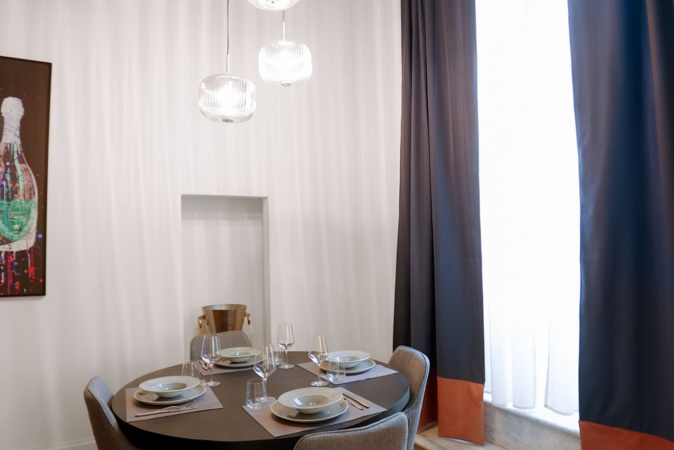 Gli ambienti si distinguono per soffitti alti, luce naturale e arredi moderni, creando un’atmosfera elegante ma allo stesso tempo accogliente.