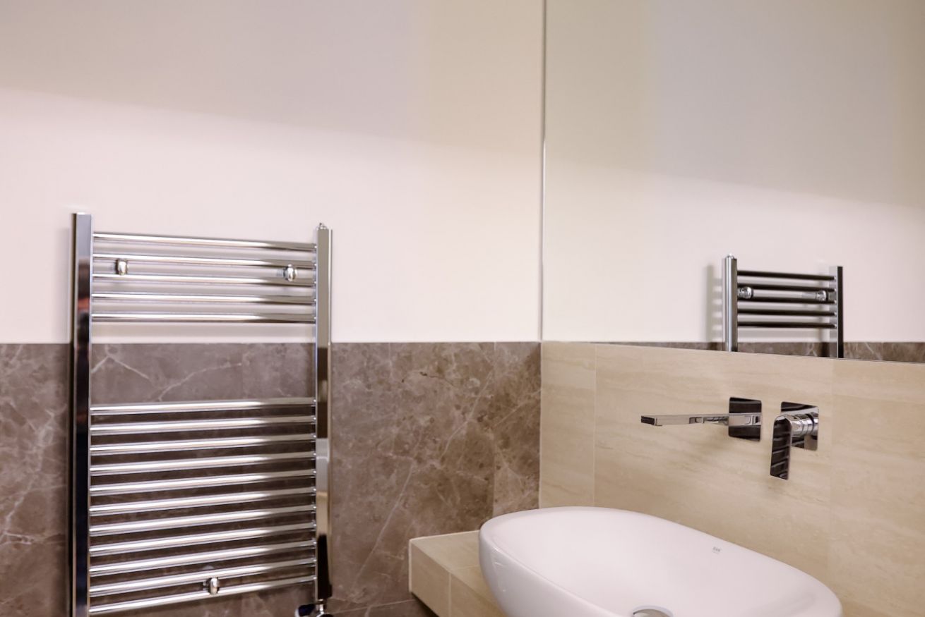 L’appartamento è ampio, ben distribuito e progettato per garantire comfort e privacy: