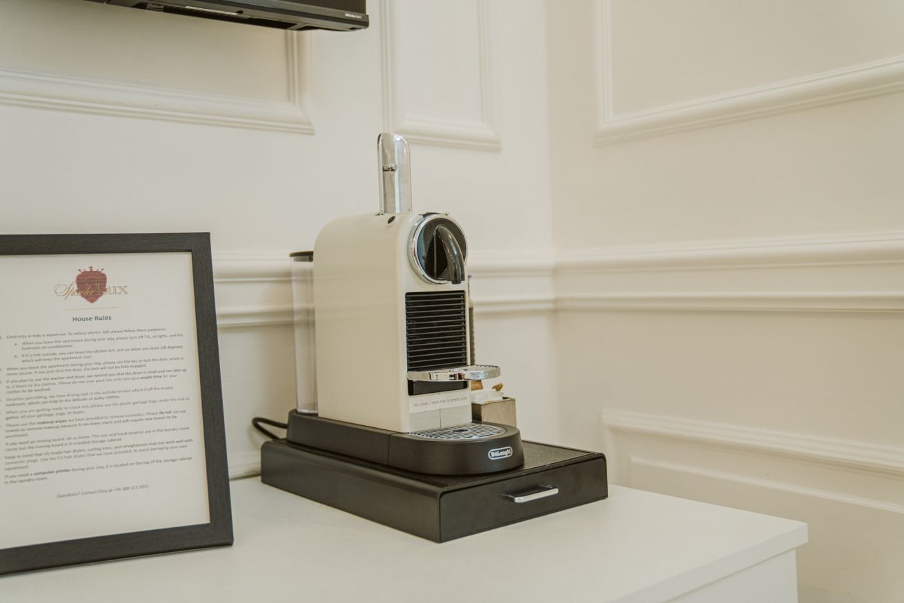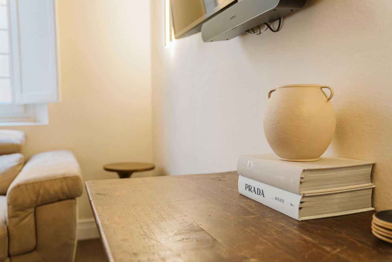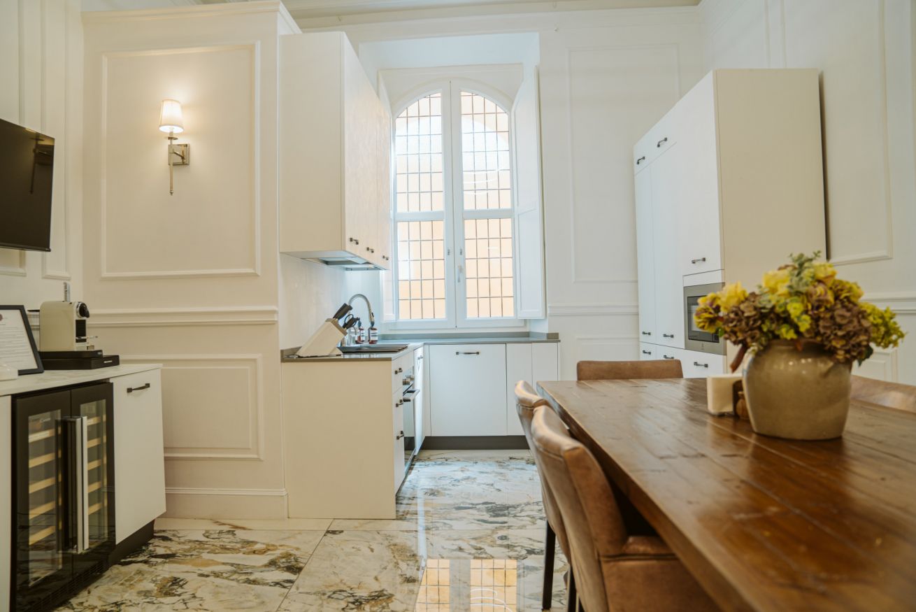 La cucina è completamente attrezzata e dispone di un ampio tavolo da pranzo per momenti conviviali. Internet in fibra ottica ultraveloce (600 Mb/s), macchina Nespresso, smart TV e un impianto SONOS surround in una delle stanze rendono questo appartamento perfetto sia per relax che per smart working. La posizione è strategica: a soli 7 minuti a piedi da Santa Maria Novella, dal Duomo e dal Ponte Vecchio.
