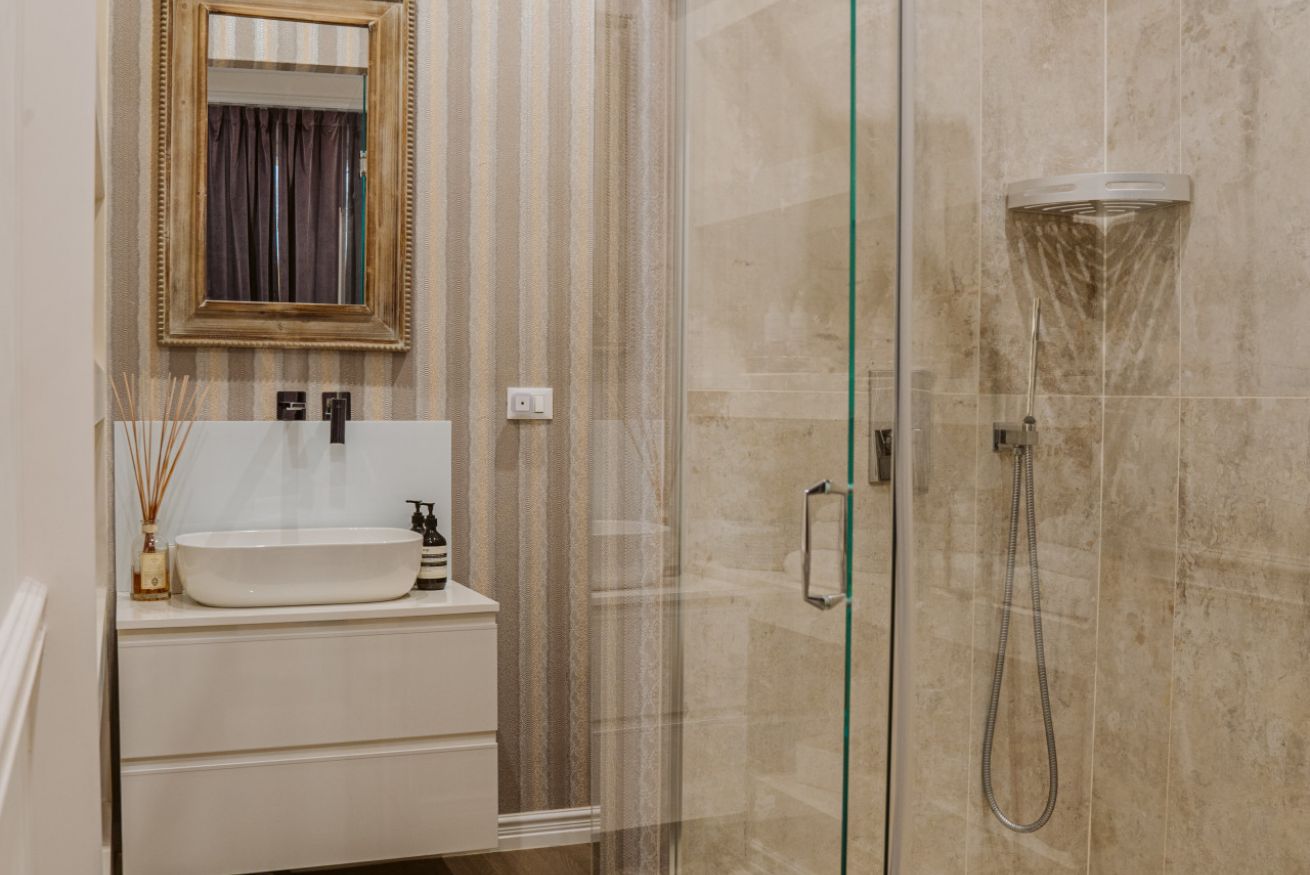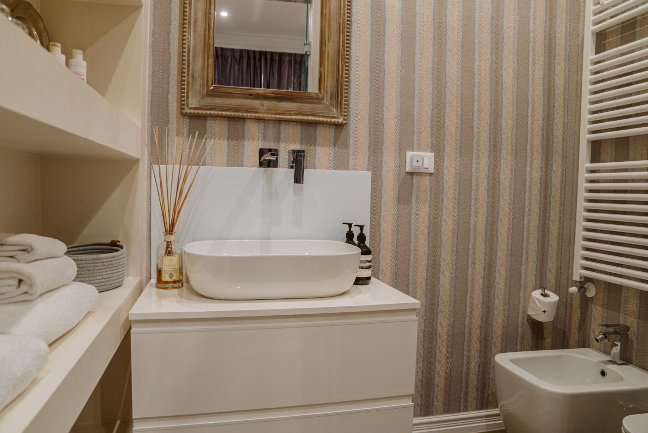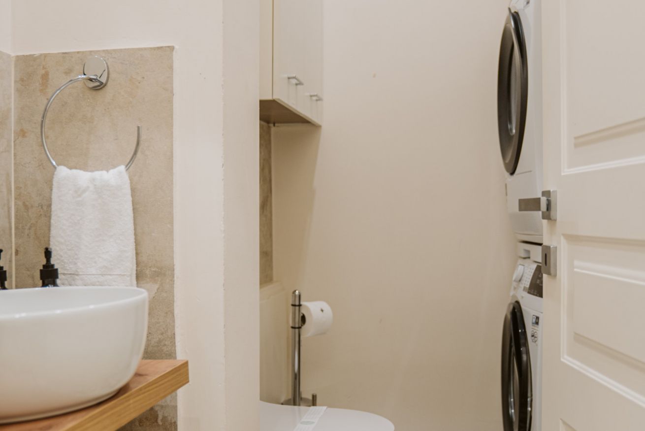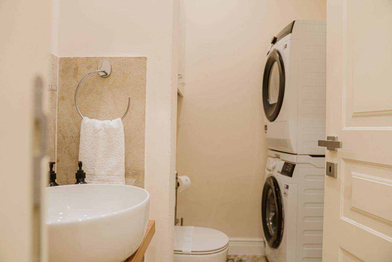 Ogni camera dispone di bagno privato, oltre a un bagno di servizio aggiuntivo che ospita lavatrice e asciugatrice di ultima generazione.