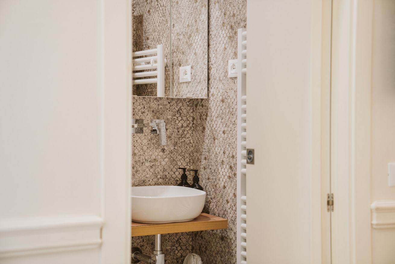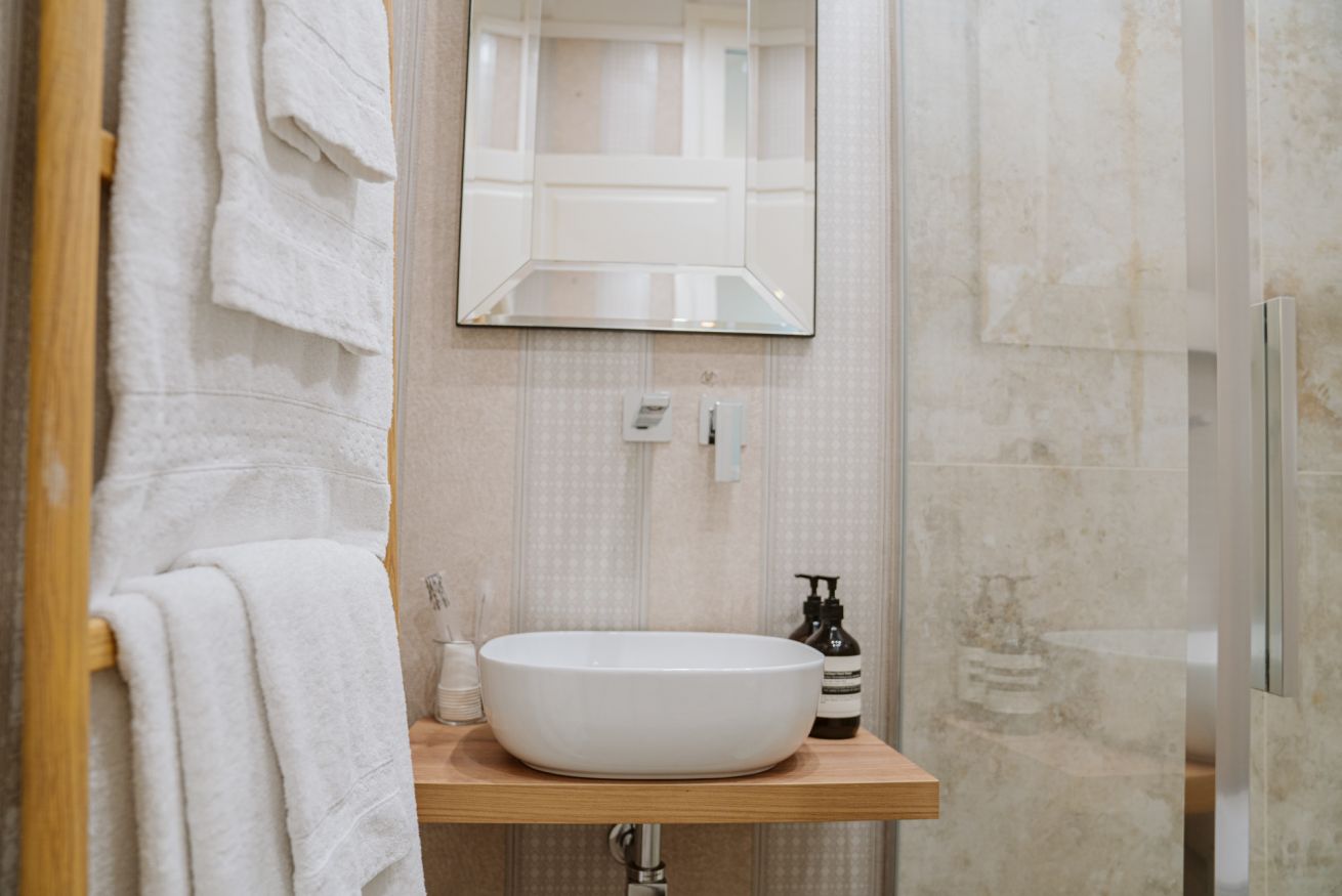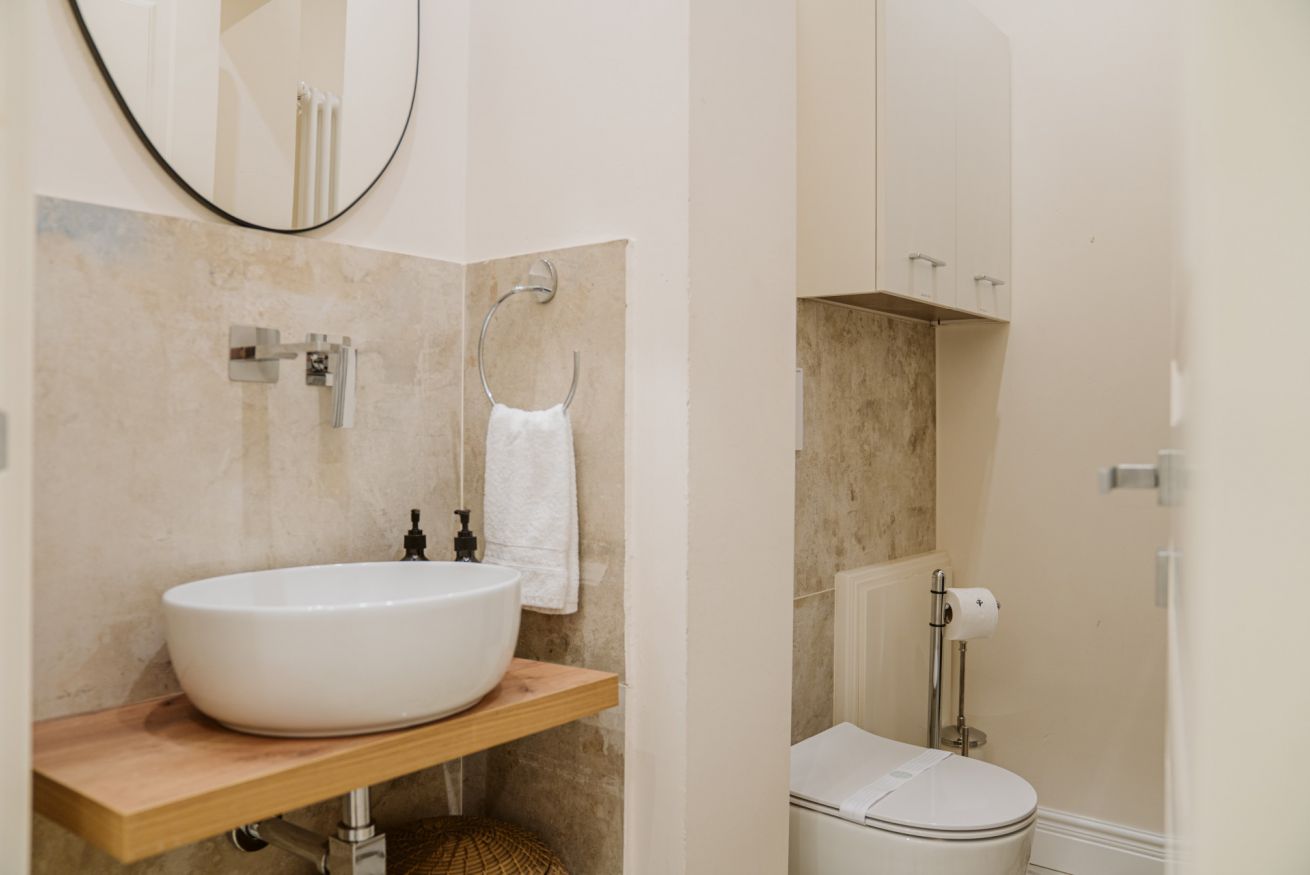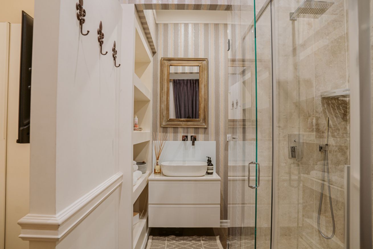 Ogni camera dispone di bagno privato, oltre a un bagno di servizio aggiuntivo che ospita lavatrice e asciugatrice di ultima generazione.